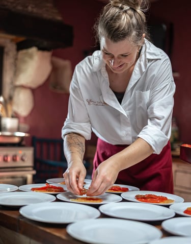 Amoureuse de la vie et de son lot de surprises, c'est à travers la cuisine que Mathilde a choisi de s'exprimer et de transmettre. En proposant une cuisine de saison, goûteuse, saine et gourmande, elle souhaite mettre à l'honneur les produits locaux en les sublimant.
