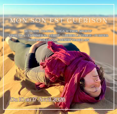 RETRAITE CHAKRA YOGA & TREK SPORTIF EN IMMERSION DANS LE DÉSERT ✨ 8 jours & 7 nuits ✨ du 10 au 17 Avril 2026💙 MON SON EST GUÉRISON 💙 VISHUDDA - ÉNERGIE DU CHAKRA DE LA GORGE « Ce qui ne s’exprime pas s’imprime » Stage yoga - Stage bien être - Retraite bien être - Retraite Spirituelle